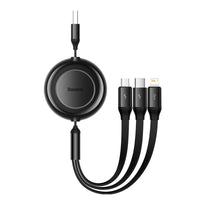 Baseus Bright Mirror 2 Series Retractable 3-in-1 Fast Charging Data Cable | USB-A to Type-C, Lightning, Micro USB | 3.5A | 1.1M - BlackThe Baseus Bright Mirror 2 Series Retractable 3-in-1 Fast Charging Data Cable offers a versatile charging solution for various devices. With three outputs—USB-C, Lightning, and Micro USB—this cable reduces the need for multiple cords, making it a convenient option for users with different gadgets....
