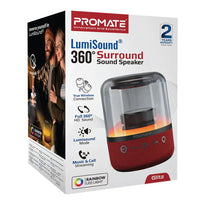 Promate Glitz HD - LumiSound 360° Surround Sound Speaker - RedDiscover superior audio quality with the Promate Glitz HD LumiSound 360° Surround Sound Speaker. Designed to deliver immersive, 360-degree sound, this portable Bluetooth speaker combines rich audio with an eye-catching light show. Its sleek and modern exterior complements any space, making it an ideal...